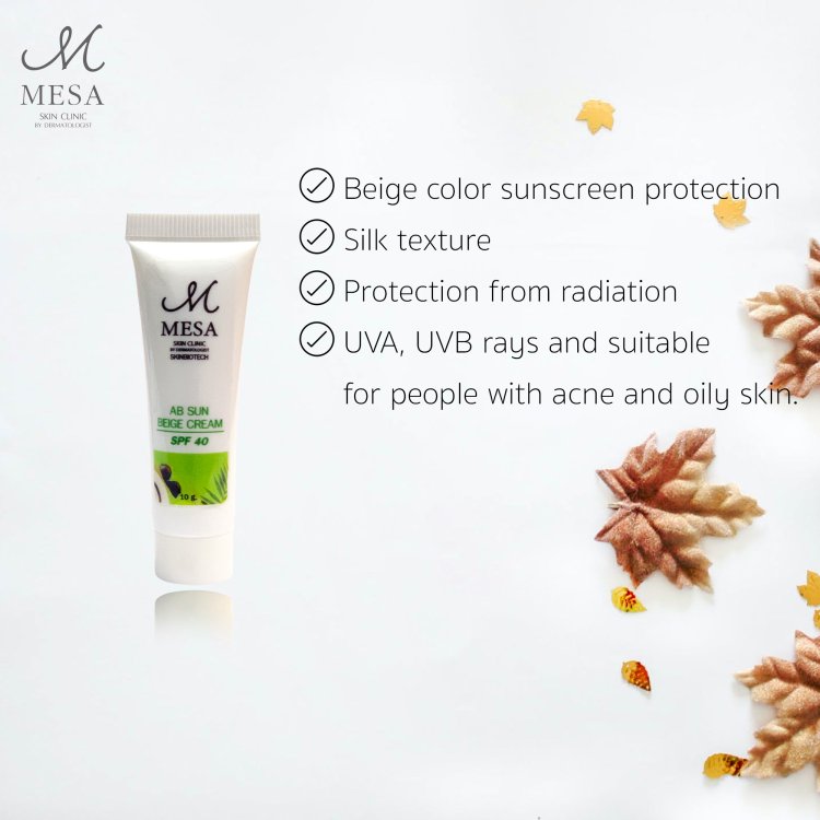 ครีมกันแดด เมษาคลินิก เหมาะกับคนเป็นสิว ผิวมัน โดยแพทย์ผิวหนัง SPF40/PA+++ 10g เนื้อใยไหม สีเบจ