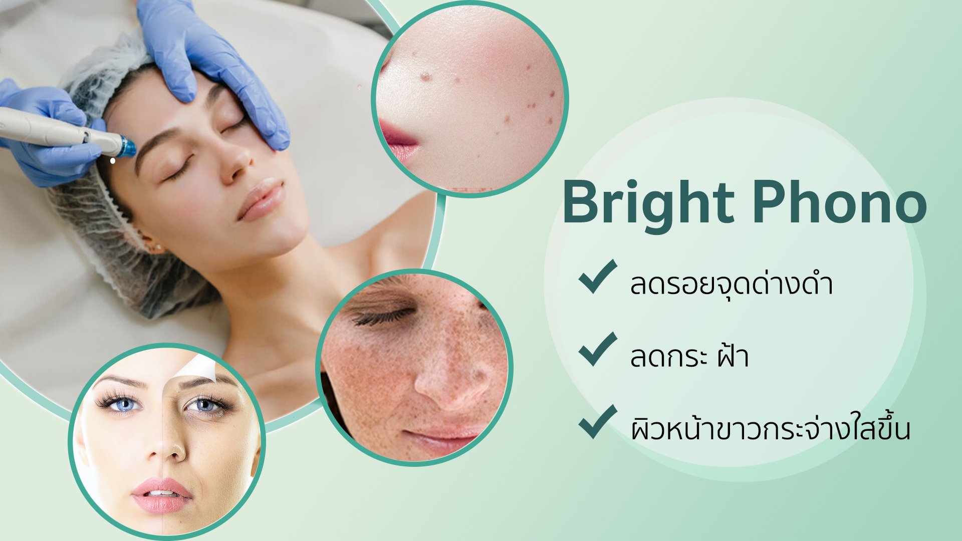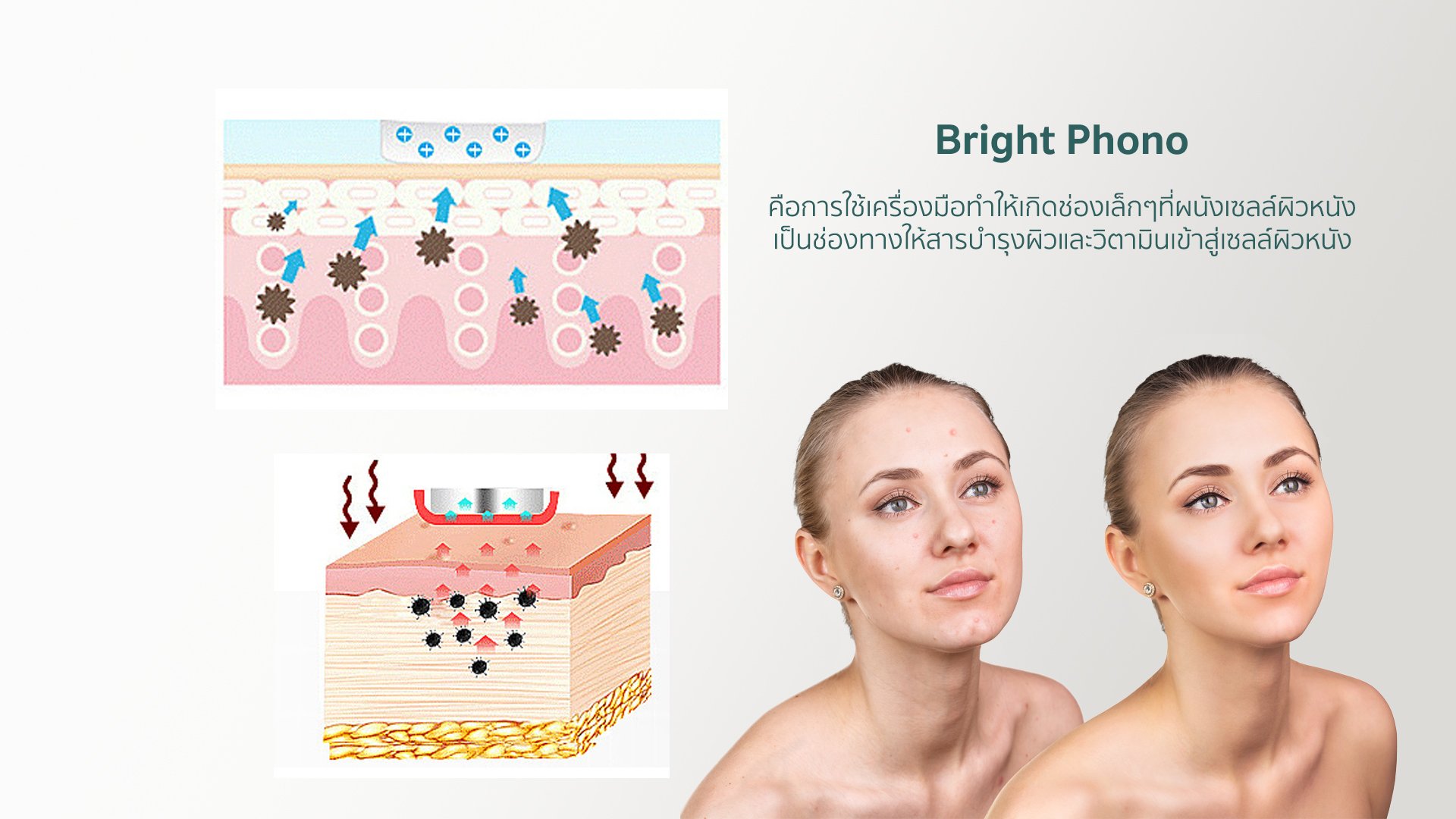 โปรแกรม Bright Phono คือการใช้เครื่องมือทำให้เกิดช่องเล็กๆที่ผนังเซลล์ผิวหนัง เป็นช่องทางให้สารบำรุงผิวและวิตามินเข้าสู่เซลล์ผิวหนัง ช่วยลดความแห้งกร้านของผิว ผลของการทำเทียบเท่ากับการใช้มอยซ์เจอไรเซอร์จำนวนมาก อีกทั้งสามารถนำสารบำรุงผิวเข้าใต้ผิวหนังในระดับลึกได้ดีโดยแพทย์จะตรวจสภาพผิวหน้า เลือกวิตามินและสารบำรุงผิวที่เหมาะสมกับสภาพผิวหน้าและปัญหาของแต่ละบุคคล